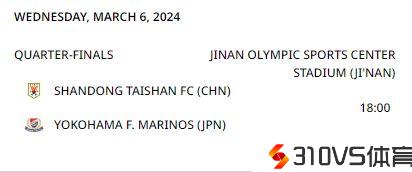 2月26日,亚足联官方网站赛程更新,亚冠1/4决赛,山东泰山队与横滨水手的两回合竞赛,开球时间曾经确定。