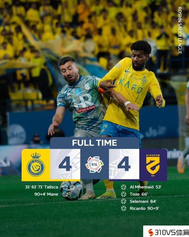 C罗停赛列席,虽然塔利斯卡演出帽子戏法,但是利雅得成功还是在4次抢先的状况下惨遭绝平,痛失3分。这样一来,他们在先赛1场的状况下落后领头羊利雅得新月6分,很能够被拉大差距,夺冠希望不大了。