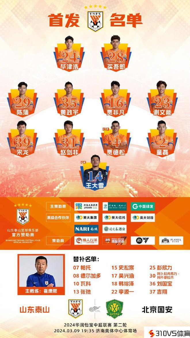 在本场京鲁大战中,山东泰山队停止了大面积的阵容轮换。球队的主力前锋克雷桑、主力左边后卫刘洋以及球队队长郑铮都没进入本场竞赛的大名单中。而李源一、彭欣力、卡扎伊什维利、帕托等主力球员也坐在了替补席上。
