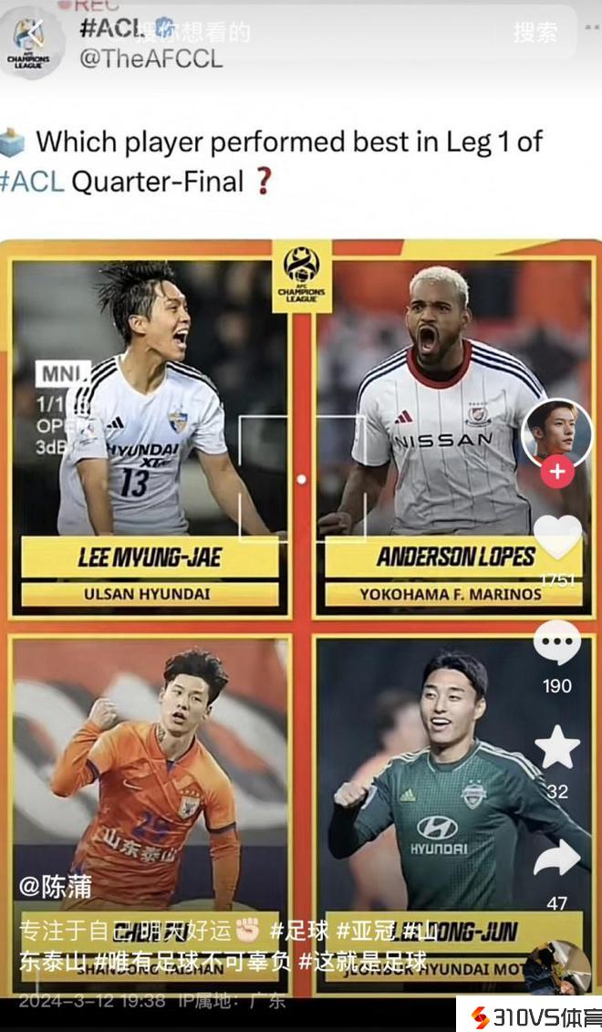明天,泰山队球员陈蒲更新社媒,鼓舞自己在明天的亚冠1/4决赛次回合有着好的表现。