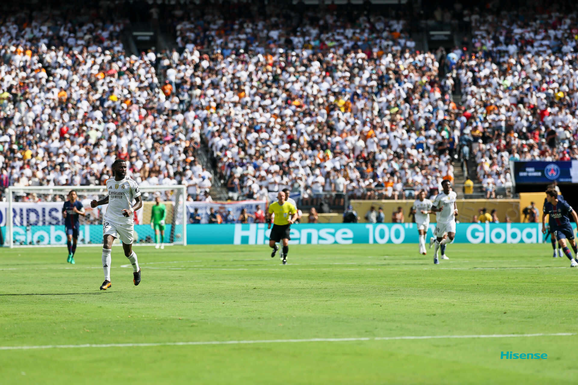 在双方近10次交手中,皇马以5胜2平3负的战绩处于上风。最近一次碰面是在2021—2022赛季的欧冠1/8决赛,当时,大巴黎两回合被皇马淘汰出局。此番再战,大巴黎调动出了极佳的状态。上半场第6分钟,法比安首开纪录,仅仅三分钟后,登贝莱单刀破门,大巴黎取得2-0的梦幻开局。第24分钟,法比安接阿什拉夫助攻再进一球,大巴黎以3-0领先。下半场,巴尔科拉助攻拉莫斯,后者一蹴而就帮助球队拿下全场比赛胜利!
