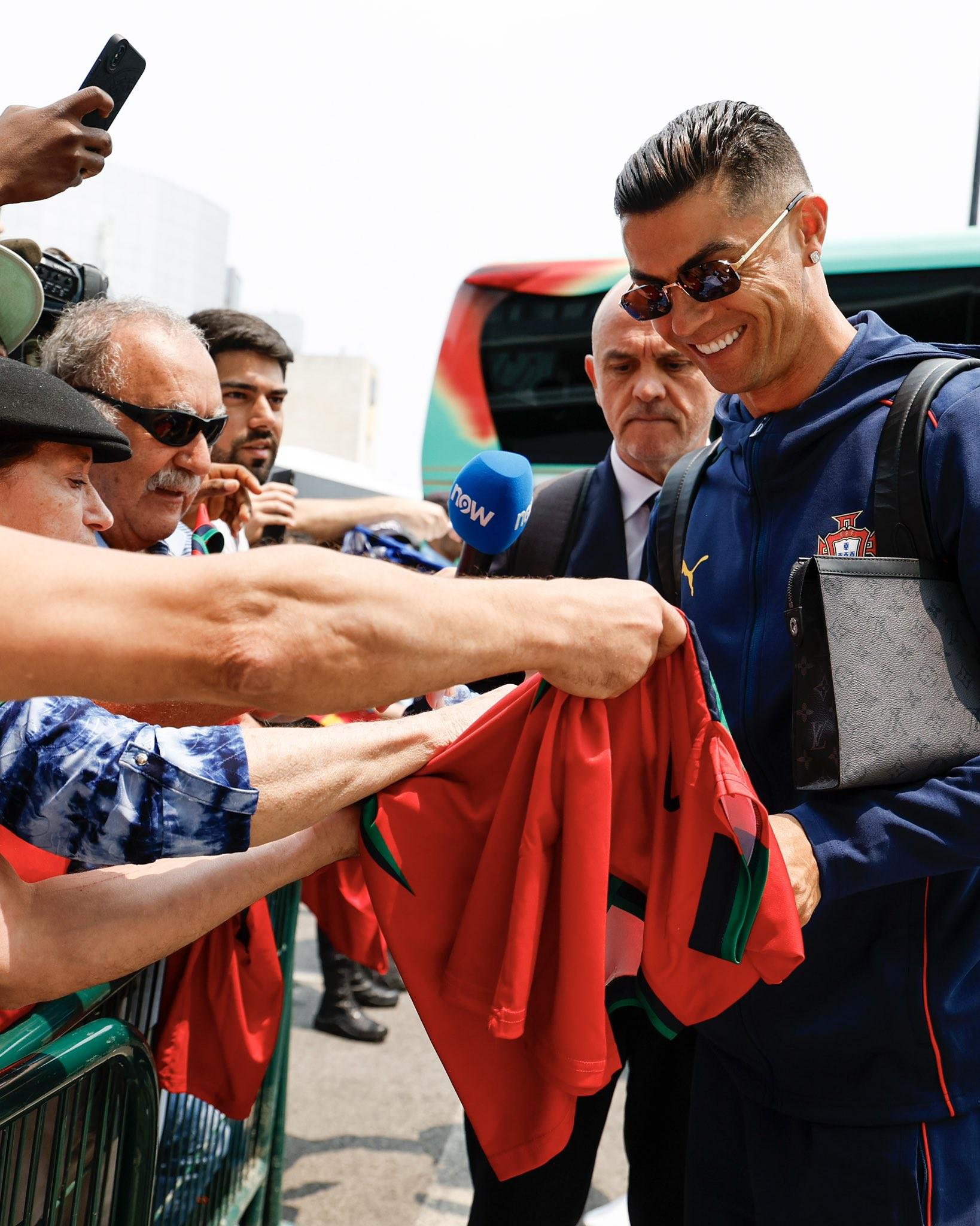 北京时间6月4日,葡萄牙球星克里斯蒂亚诺-罗纳尔多通过社交媒体晒出一张与球迷热情互动的照片,引发广泛关注。画面中,C罗面带笑容地为球迷签名合影,展现出良好状态与亲和力。