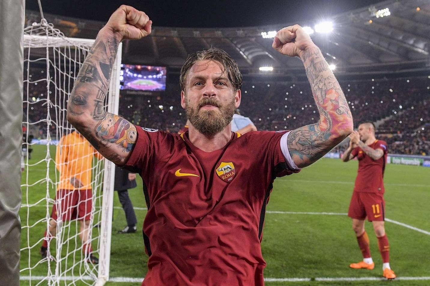 托蒂退役后,臂膀上的队长袖标找到了最合适的传承者——德罗西。这位12岁就进入罗马青训的“红狼之子”,在托蒂阴影下当了18年副队长,被球迷戏称为“千年队副”。当2017年终于接过袖标时,德罗西已为球队出战616场,他的热血拼抢和精准长传,成为罗马中场最坚韧的脊梁。