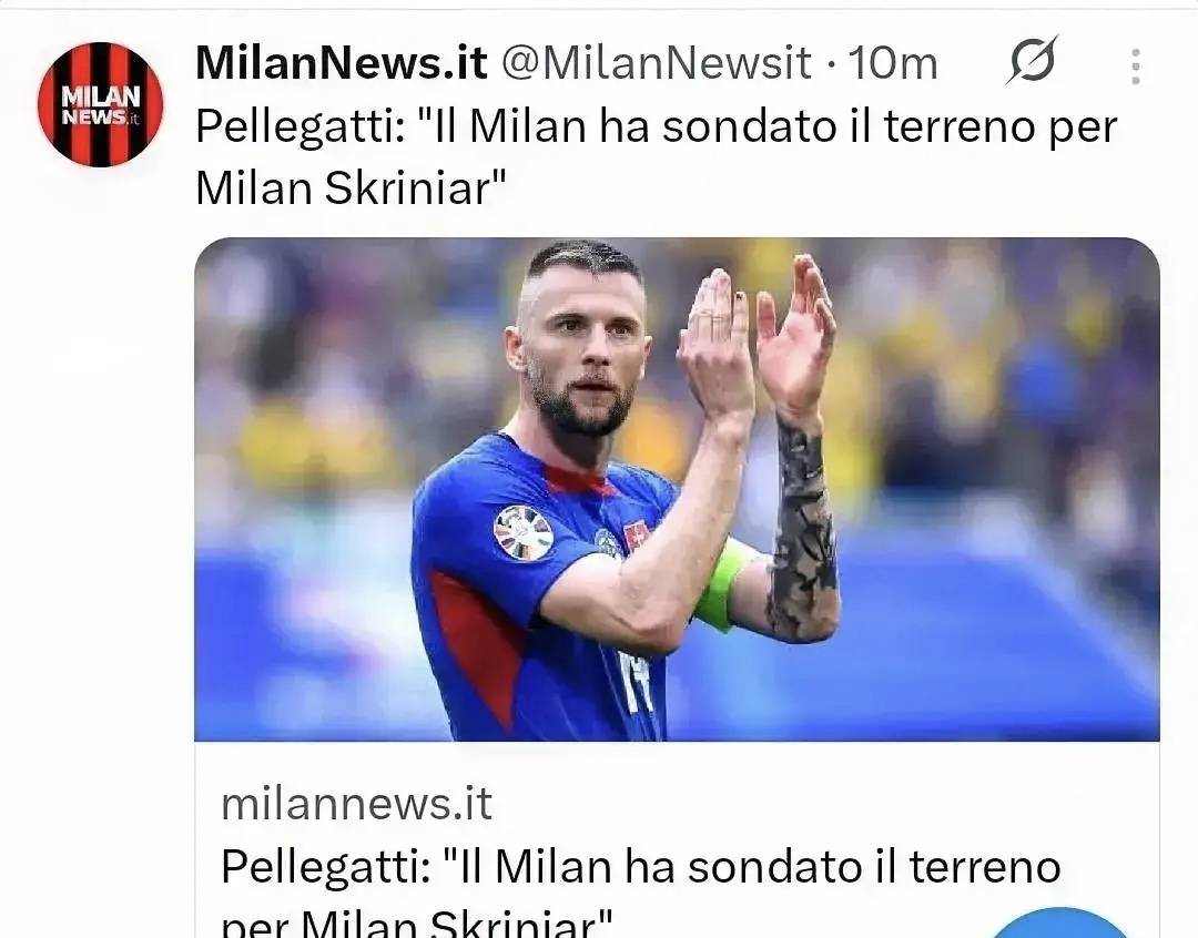 什克里尼亚尔!米兰对国际米兰前队长什克里尼亚尔充满兴趣,什克里尼亚尔对于重回意大利十分有兴趣,什克里尼亚尔自己清楚自己的状态,他在土耳其表现十分一般,毕竟他的年龄还能有一份体面的退休合同,现在的表现退休合同有点够呛了,所以他想回意大利找找状态,我相信,但是米兰全额支付工资我不相信。什克里尼亚尔降薪加盟我更不相信。