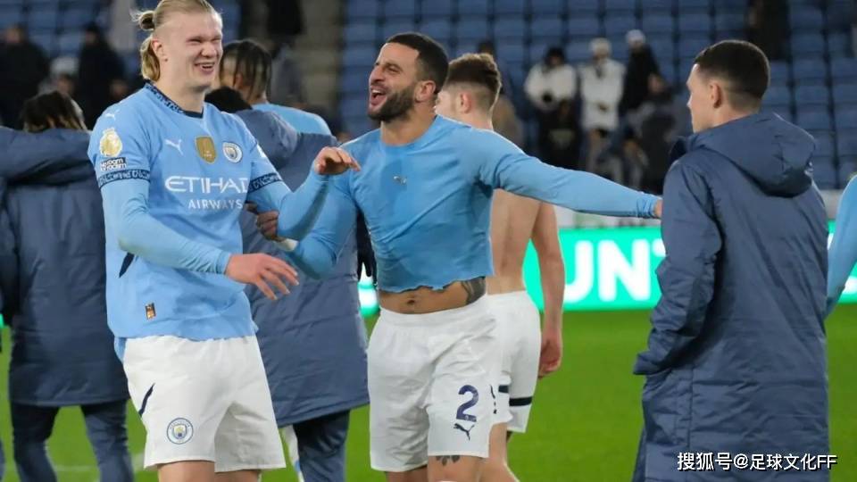 曼城队长凯尔·沃克与埃尔林·哈兰德一起庆祝胜利
