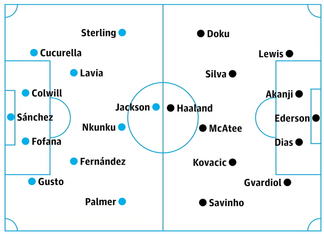赛前,《卫报》预测了双方首发阵容。曼城方面,哈兰德领衔锋线,科瓦西奇、B席在列,詹姆斯-麦卡特先发出战。切尔西方面,杰克逊突前,帕尔默、恩昆库有望先发出战。