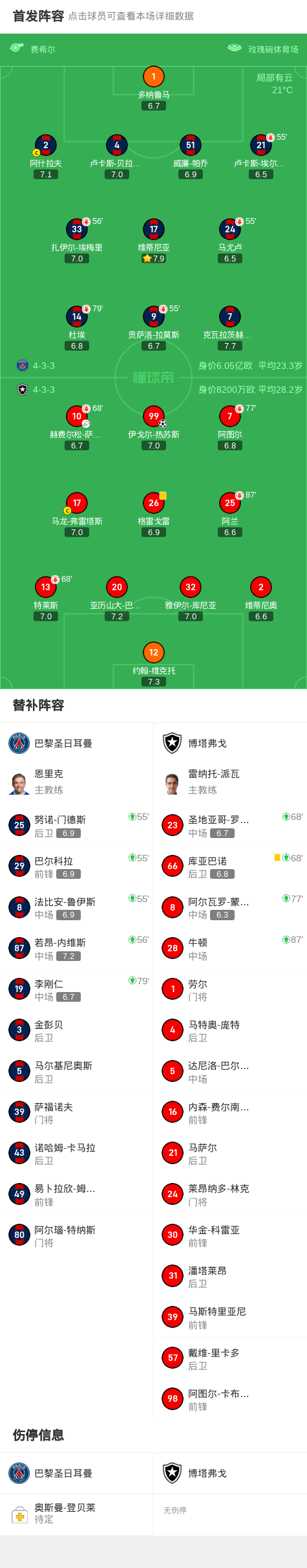 北京时间6月20日9:00,世俱杯小组赛B组第2轮,巴黎圣日耳曼与博塔弗戈在玫瑰碗体育场 角逐,本场主裁判为德鲁-费舍尔。上半场,博塔弗戈打出高效反击,伊戈尔-热苏斯抓住机会折射破门。下半场,巴尔科拉打入一球被判无效。最终,巴黎0-1不敌博塔弗戈,跌至小组第二。