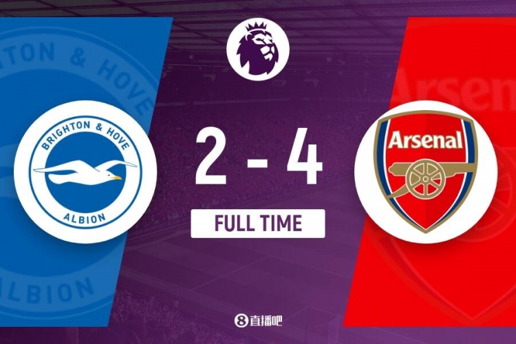 全场比赛结束,阿森纳4-2布莱顿。