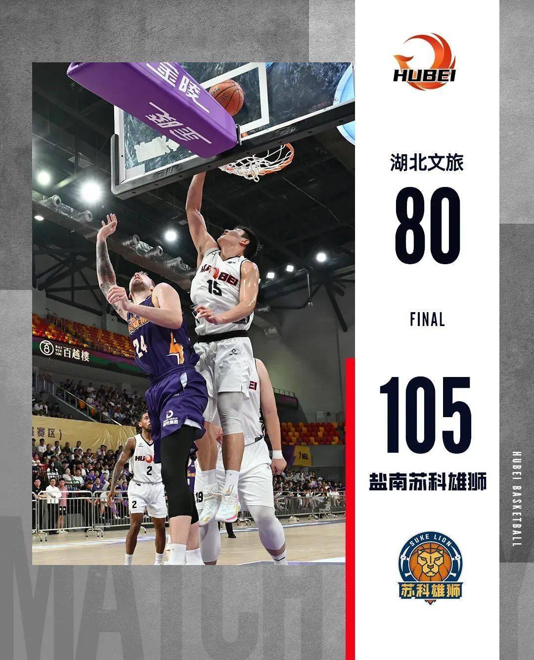 易边再战,湖北众多年轻小将获得出场机会且皆有不错表现,宋宇卓连续冲击篮下同时防守端做好了对于篮板球的保护,末节路万通更是连续快攻中面对防守两次打成2+1,比赛最后时刻依旧不轻言放弃,在防守端高高跃起破坏了对方外援的扣篮尝试,最终全场比赛结束,湖北文旅80:105盐南苏科雄狮。