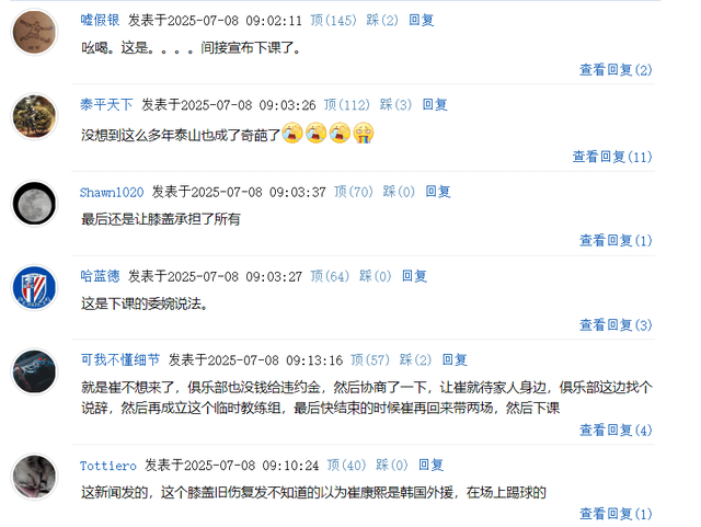 泰山队变相官宣崔康熙下课,主因居然是这六个字,评论区笑成一片