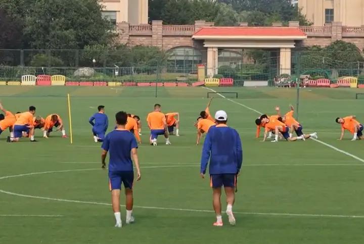 泰山队官方视频显示,当球员进行热身训练时,韩鹏和助手走向正在训练的球员,此时韩鹏的后背已经湿透。泰山队的训练内容以传接球和小场地对抗为主。