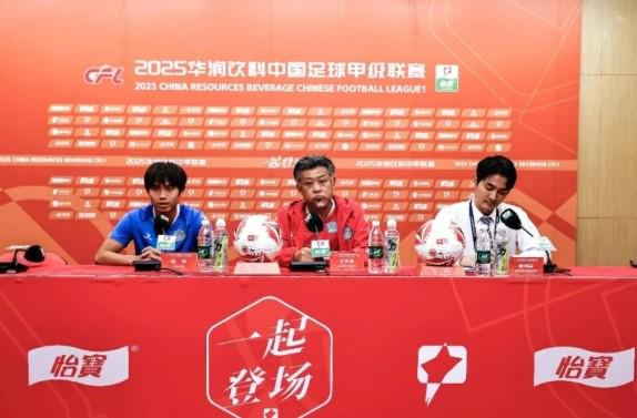北京时间7月11日,在中甲第16轮,佛山南狮主场对阵深圳青年人的赛前,佛山主帅王宏伟和队员黄楚淇出席了新闻发布会。