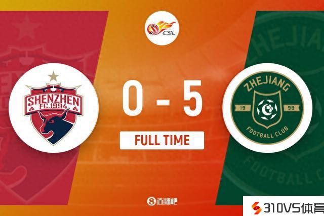 下半场补时3分钟。最终全场竞赛完毕,深圳0-5浙江队。