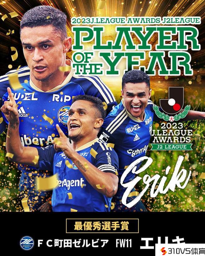 2023赛季J2联赛颁奖仪式近日举行,前长春亚泰外援、现效能于町田泽威亚的埃里克中选该联赛2023赛季最佳球员。