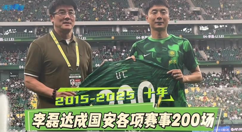 6月17日晚,中超第6轮补赛北京国安主场对阵青岛西海岸的比赛开始前,北京国安俱乐部为老将李磊颁发200场里程碑纪念球衣。随后,李磊在社交媒体里向国安俱乐部以及球迷致谢。