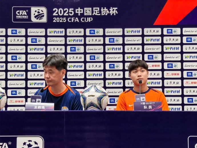 北京时间6月20日,在足协杯1/8决赛,青岛海牛主场对阵广西恒宸的赛前,海牛主帅李霄鹏和队员金永浩出席了新闻发布会。