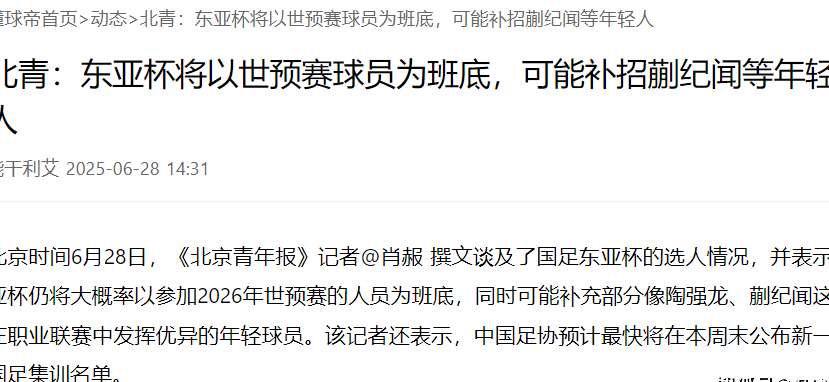随着东亚杯临近,国足新帅久尔杰维奇的选人思路逐渐清晰:重用亚青赛核心球员。其中,王钰栋将扛起锋线大旗,而中场新星蒯纪闻则因技术特点酷似皇马边锋迪亚斯,被视作国足未来的中场核心。