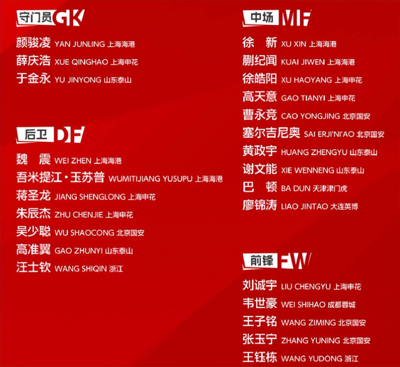 中国男足这份新名单一公布,立即引发了外界的一片争议,特别是4个位置的选人用人,更是让外界一片质疑之声。