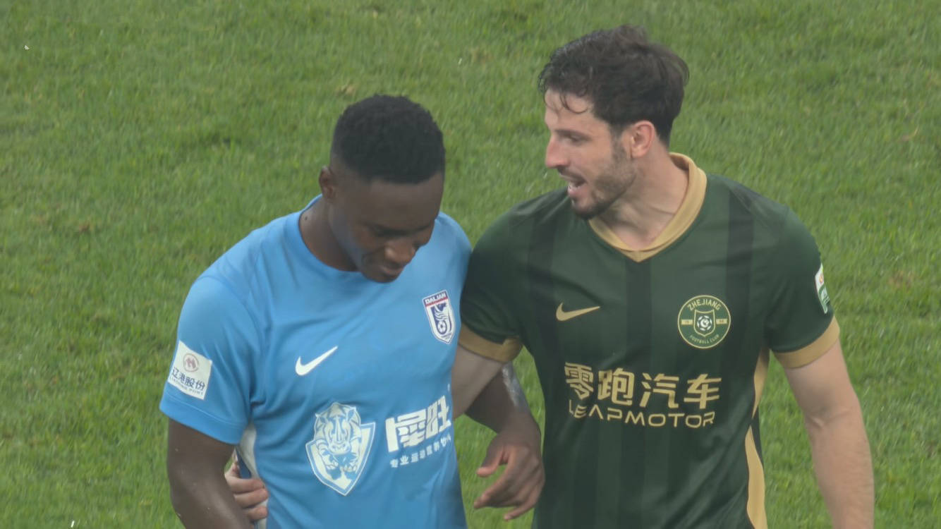 上半场最后时刻,浙江队利用定位球,后点补射破门,幸运的是对手越位在先,进球无效,大连英博力保球门不失。在这次防守中,门将黄子豪要立头功,扑出了对手第一脚射门,与此同时,中后卫宋岳稍微后退一点,也恰好是这毫厘之间,让对手处于越位的位置。引进宋岳是大连英博本赛季后防线最佳内援,有向前出球的能力,足够的强硬,和李国旭战术很匹配。