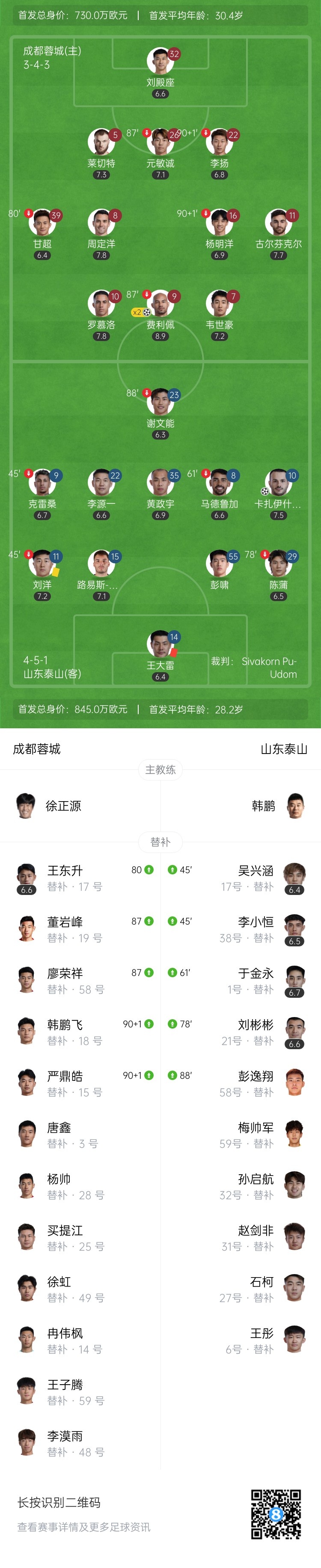 第31分钟,山东泰山中场抢断策动反击,刘洋接到队友直塞,突入禁区横传门前,卡扎伊什维利抢点破门,山东泰山1-1成都蓉城。↓