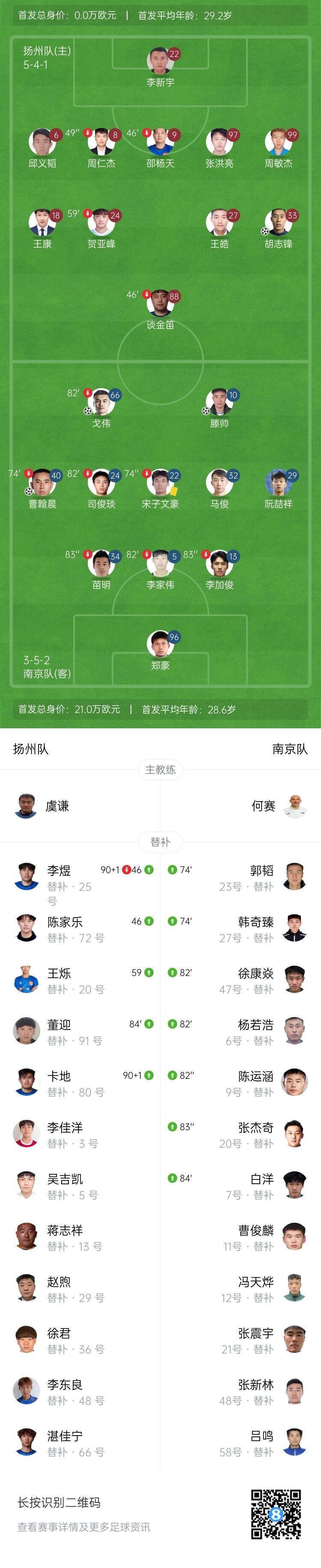 伤停补时2分钟。全场比赛结束,扬州1-5南京。