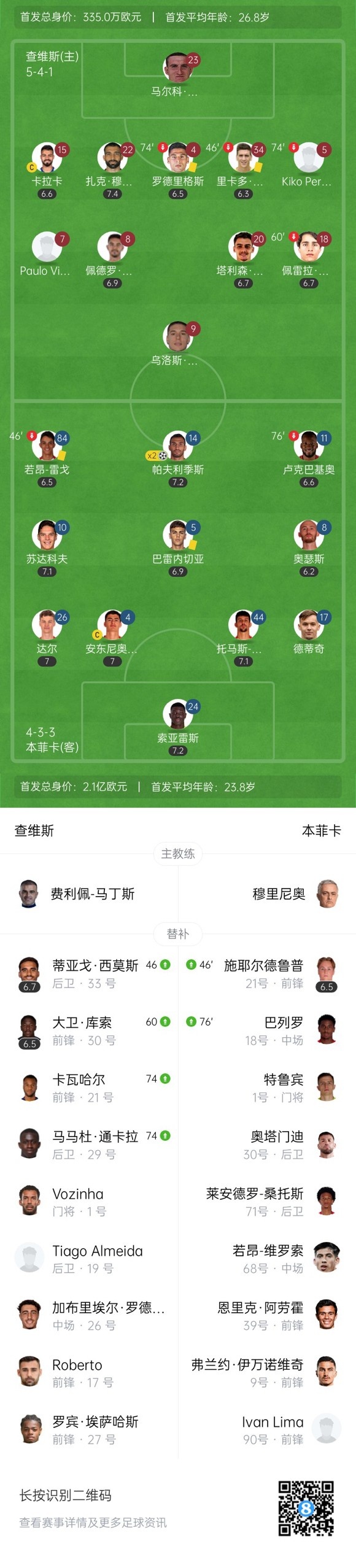 双方首发以及换人信息: