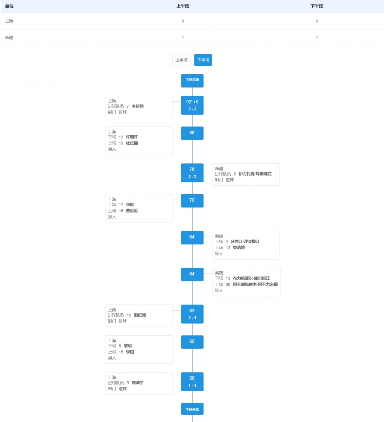 11月08日讯 全运男足U20 1/4决赛,上海U20 3-2新疆U20晋级4强,将会在半决赛对阵广东U20。本场比赛,刘诚宇(56')、蒯纪闻(63')、李新翔(95')为上海U20进球。