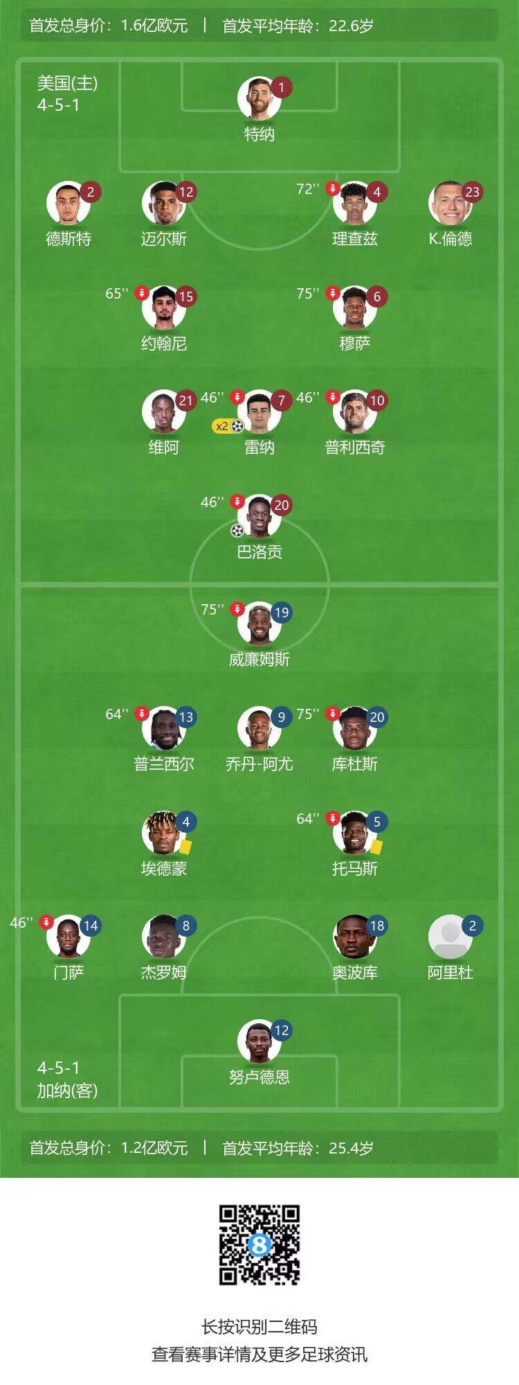 最终美国4-0轻松击败加纳。