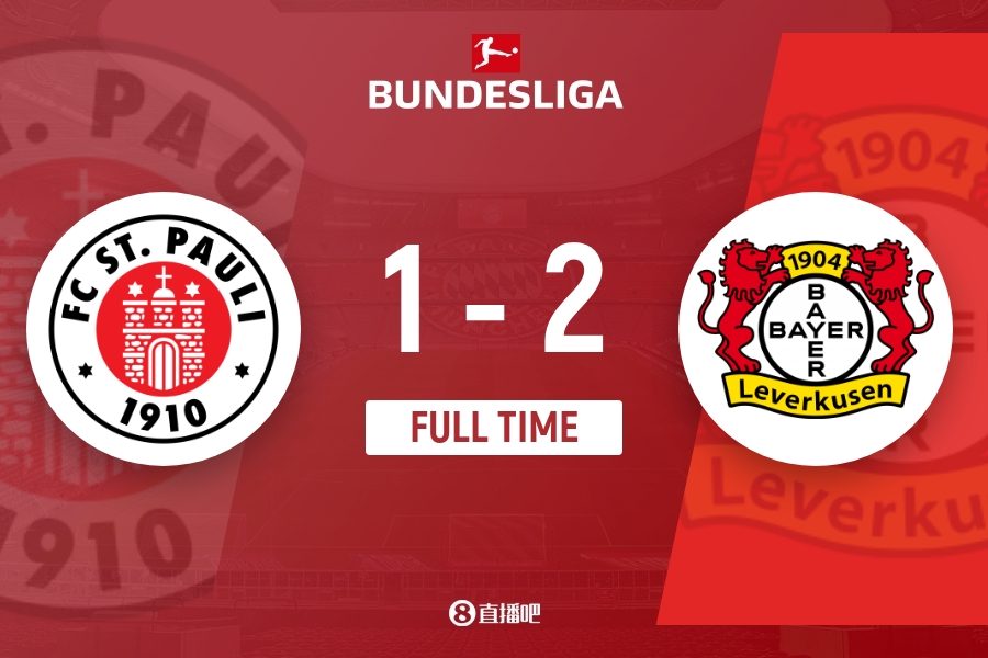 全场比赛结束,圣保利1-2勒沃库森。