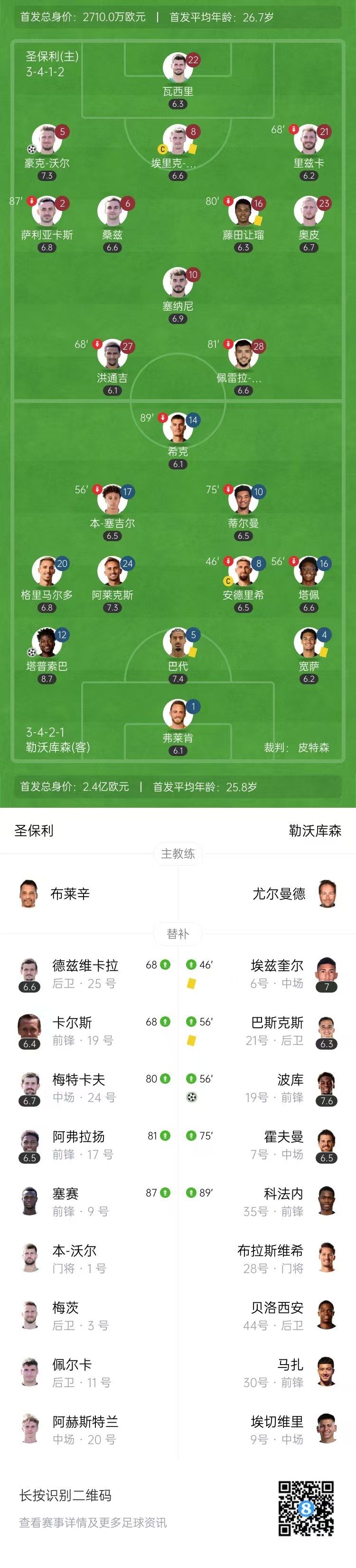 【双方首发及替补阵容】