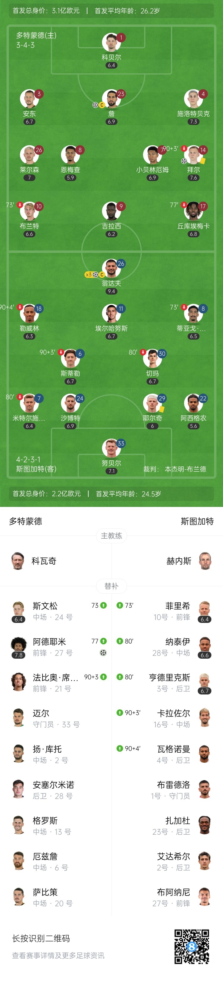 第89分钟,阿德耶米推反击,他自己接队友横传破门!3-2!多特超出比分!↓