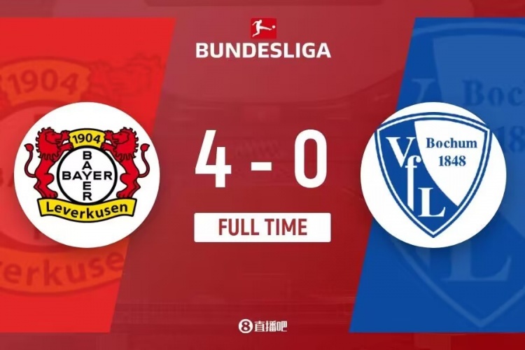 全场比赛结束,勒沃库森4-0波鸿。