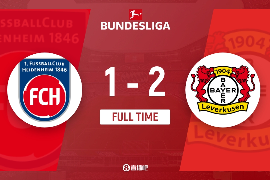 全场比赛结束,勒沃库森2-1击败海登海姆,赛季继续保持不败。