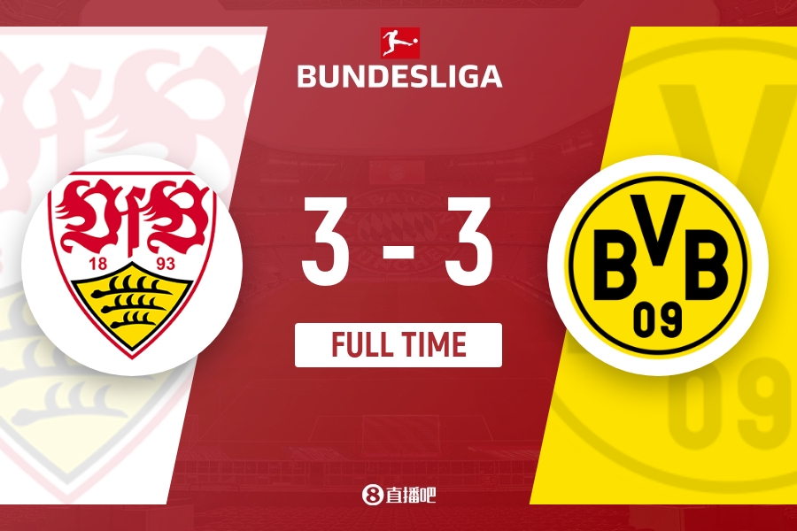 下半场补时6分钟,斯图加特3-3多特。