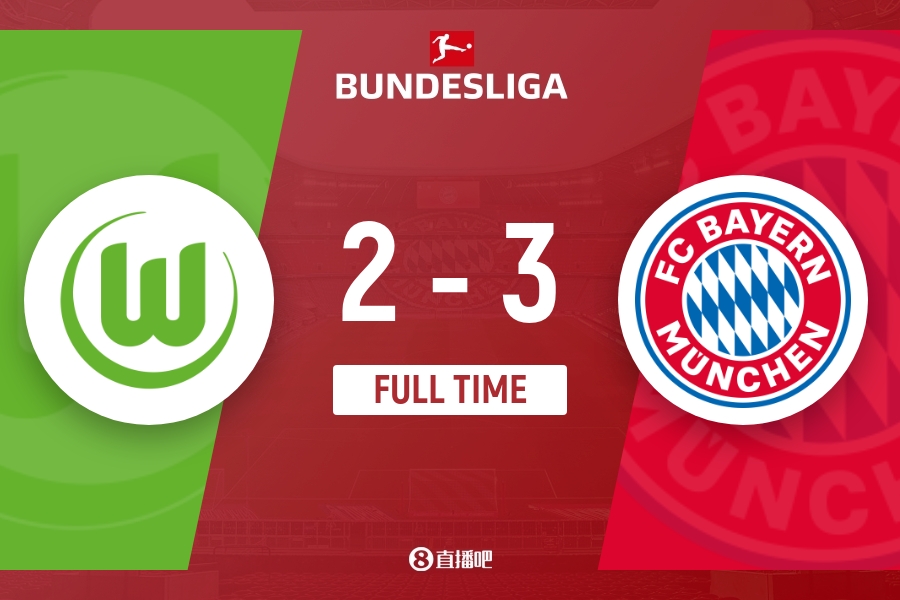 下半场伤停补时5分钟,全场比赛结束,最终拜仁3-2沃尔夫斯堡。