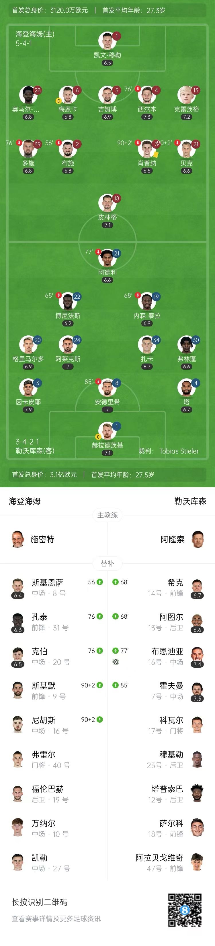 第66分钟,海登海姆反击,右路传中,皮林格脚后跟打门被门将抱住。↓