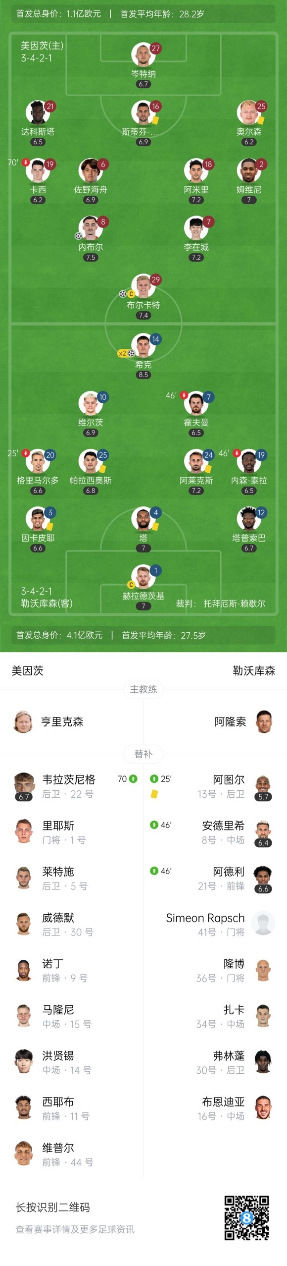 最终,美因茨2-2勒沃库森。