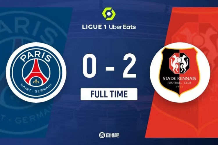 下半场补时6分钟,巴黎0-2雷恩。