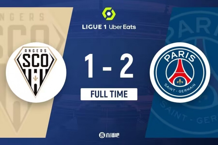 下半场伤停补时2分钟,全场比赛结束,最终巴黎圣日耳曼2-1昂热。