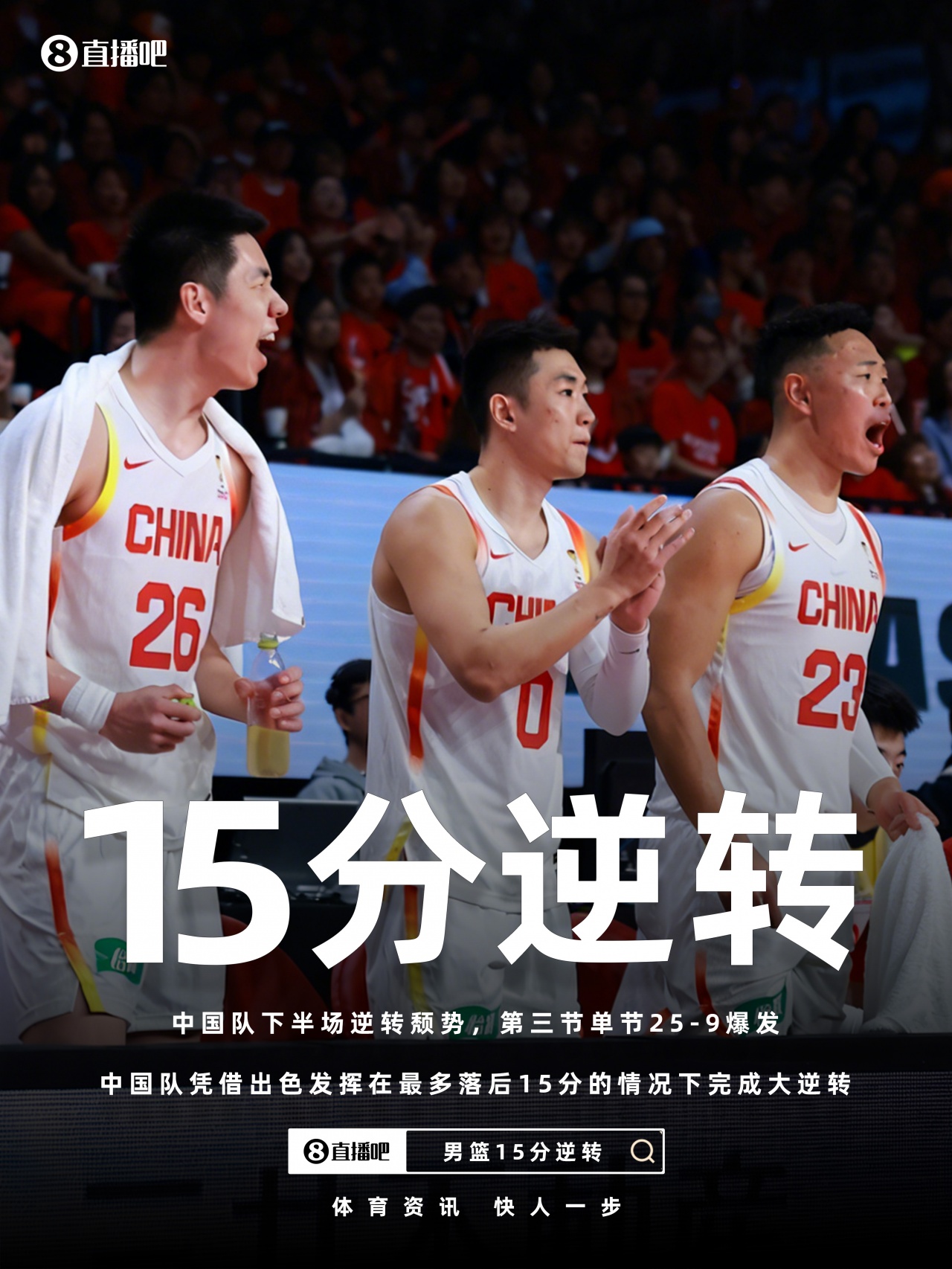 首节开局中国男篮慢热打得比较被动,防守篮板保护不利和过快的犯规给日本男篮取得领先的机会,赵睿和胡金秋的连续进球破荒但整体进攻非常被动,日本男篮首节就获得14次罚球;次节前期拉锯连拿4分短暂打停日本男篮,不过节中又是一波得分荒导致局面落入被动,贺希宁和李弘权的三分位中国男篮的外线破荒,不过这一节进攻端虽然回暖,但防守端还是多次犯错给对手太多的二次机会,半场中国男篮命中率不足四成并落后14分进入下半场。休息归来中国男篮高压换防连续制造对手失误并迫使日本近6分钟里无法得分,进攻端贺希宁连续轰进三分,胡金秋冲击篮下拿分带队轰出20-2的攻势直接完成反超;末节中国男篮在拉锯战中一直占据上风顶住压力,胡金秋节中攻防在线连拿7分和一次封盖帮助球队拉开比分,读秒阶段中国男篮拉开两位数领先,最后时刻虽然戏剧性罚球给日本缩小分差机会但没制造太大威胁。最终,中国男篮逆转日本男篮拿下比赛。