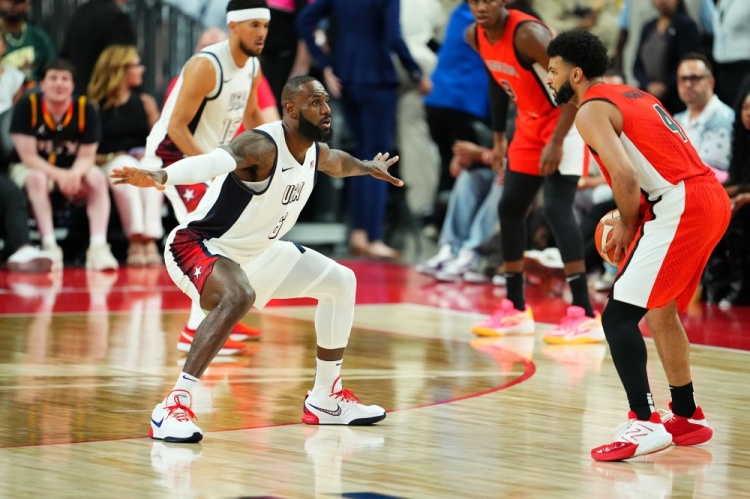比赛上来,美国队进攻端十分慢热,打了半节仅靠詹姆斯罚球拿到1分,而加拿大则是配合娴熟打出11-1梦幻开局,库里三分终于破荒,爱德华兹和塔图姆上来接连追分,但美国队失误太多首节还是落后7分,次节美国队加强防守接连内线追分,布克接连中远投,美国队一波14-2直接反超比分,随后浓眉攻防都有贡献,爱德华兹和塔图姆继续带领球队半场反超8分。下半场,库里里突外投连取9分,詹姆斯也是接连突破内线上篮,美国队领先到双位数,恩比德5犯被罚下后浓眉内线连取6分,爱德华兹压哨三分再进,美国队9-0三节领先到15分,末节美国队又陷入得分荒,4分多钟仅得1分,加拿大7-0追到个位数分差,詹姆斯长传助攻队友扣篮紧急止颓,美国队重新掌握住双位数领先,最终美国男篮86-72力克加拿大男篮。