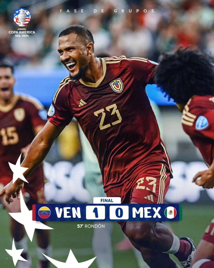 6月27日讯 北京时间6月27日9时,美洲杯B组第2轮,委内瑞拉对阵墨西哥。上半场,龙东射门击中立柱,双方互交白卷。半场战罢,委内瑞拉暂0-0墨西哥;下半场,奎尼奥内斯犯规送点,龙东点射破门打破场上僵局,尾声阶段,桑切斯造点,皮内达点球被罗莫扑出。全场比赛结束,委内瑞拉1-0墨西哥!