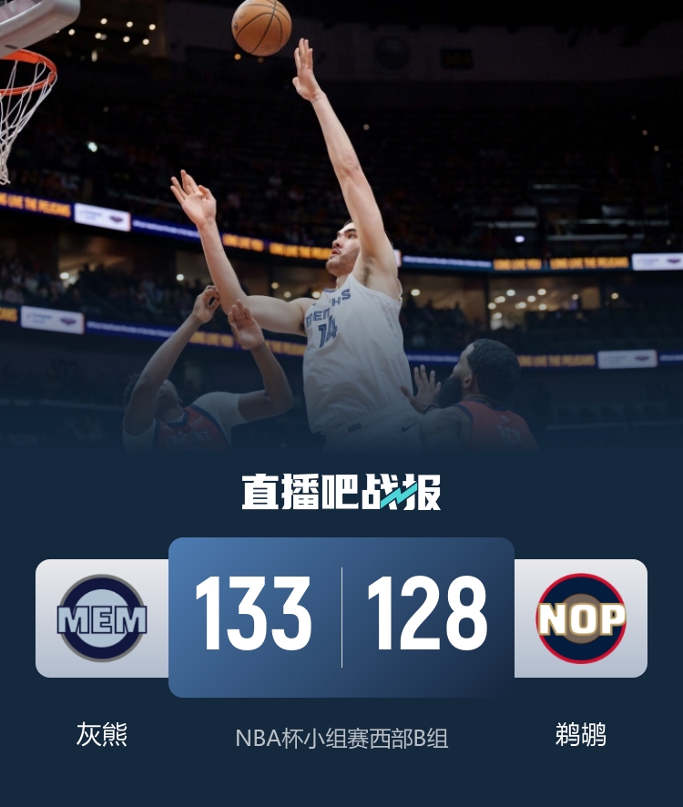 11月27日讯 NBA杯小组赛今日开打,西部B组的鹈鹕坐镇主场迎战灰熊,鹈鹕目前小组赛三场全部输球排在垫底,灰熊1胜1负。