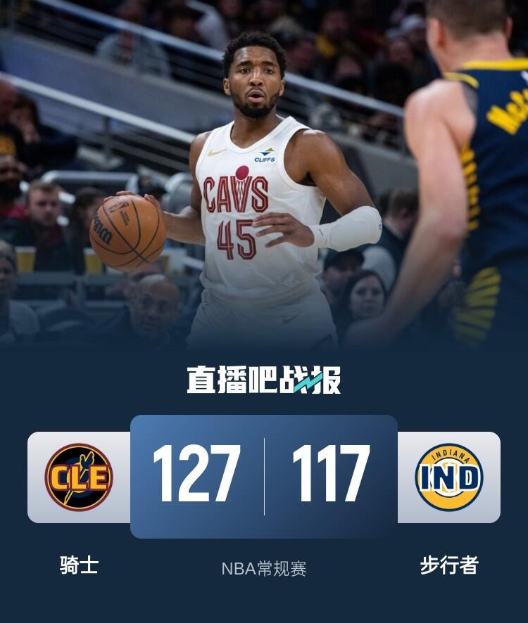 比赛开始,双方开场大打对攻,米切尔高效输出首节独得19分,步行者多点开花给出回应,此节骑士持续发力将分差拉开到两位数,步行者不断冲击内线连投带罚还以颜色,半场战罢骑士62-61仅领先步行者1分。易边再战,小莫布里连中三分单节独得13分,斯特鲁斯也连续外线开火帮助球队取得两位数优势,末节骑士稳扎稳打保持优势,马瑟林不满判罚挑衅裁判被驱逐,最终骑士127-117复仇步行者,终结了对手的6连胜。