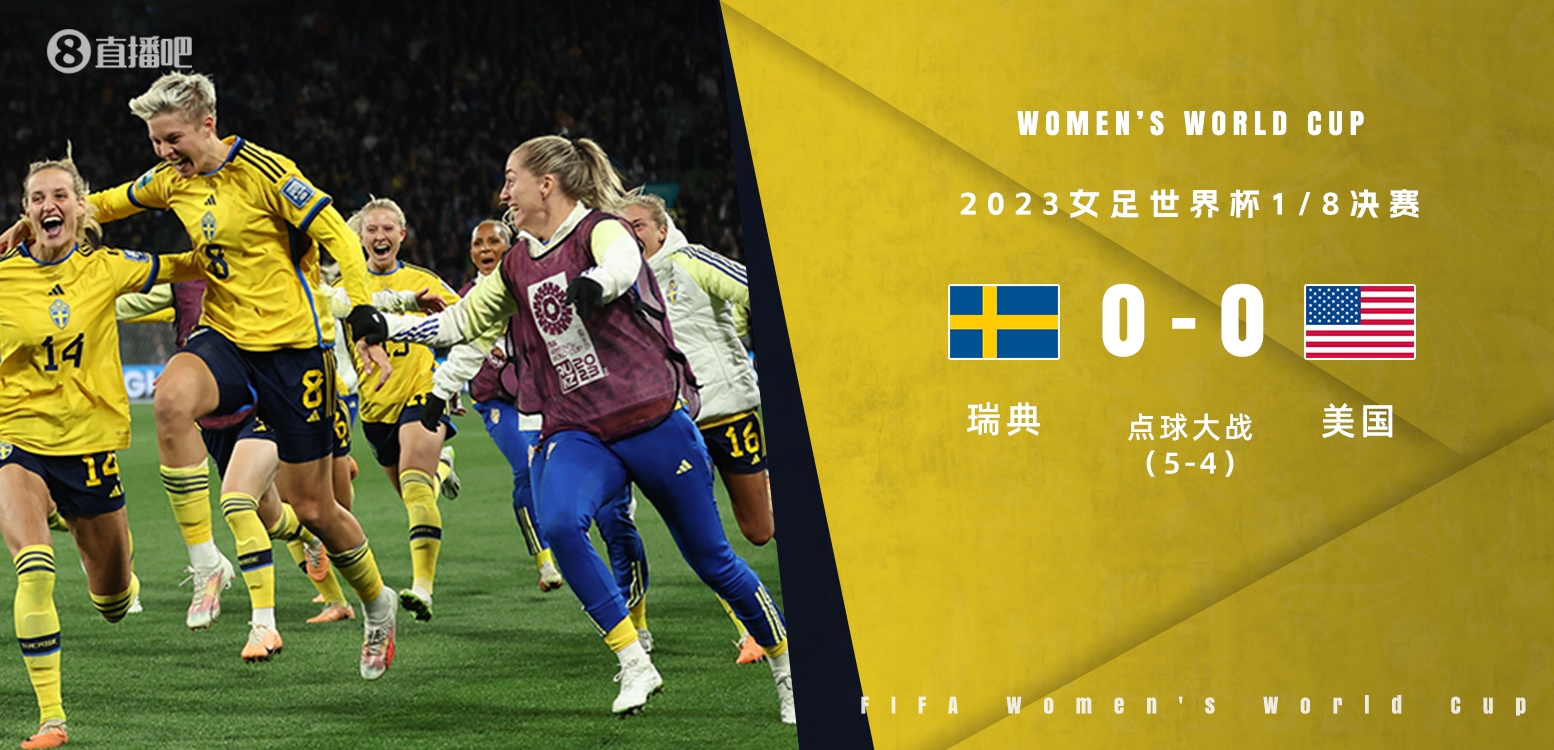 8月6日讯 北京时间8月6日,女足世界杯1/8决赛,瑞典女足对阵美国女足。上半场特丽妮蒂-罗德曼数次造险,琳赛-霍兰头球击中横梁;下半场塞西拉-穆索维奇屡献神扑,瑞典女足0-0美国女足,比赛进入加时;点球大战美国女足这边拉皮诺埃、索菲亚-史密斯和奥哈拉罚失,最终,美国女足点球大战4-5瑞典女足,无缘八强,瑞典女足下轮将迎战日本女足。
