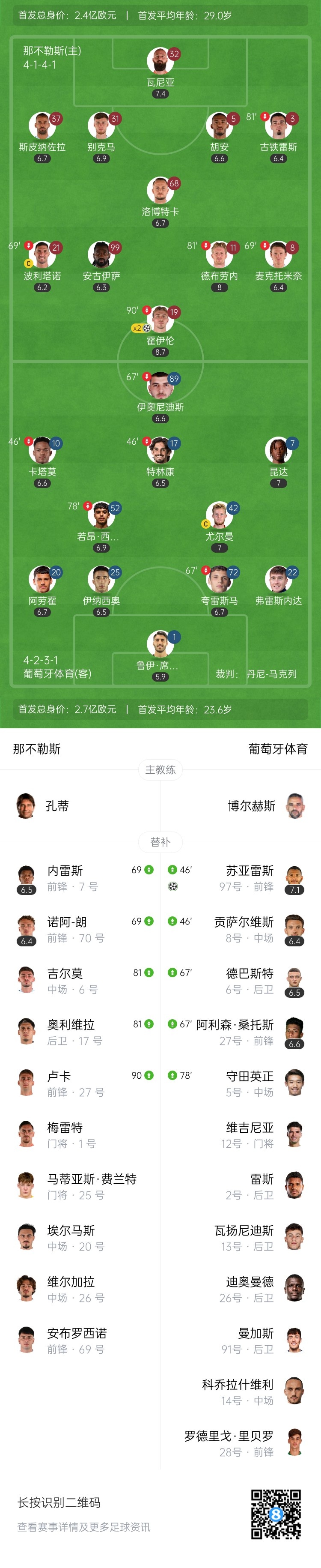 第36分钟,德布劳内后场先回做保住球权,随即前插接直塞奔袭突破送助攻,霍伊伦单刀破门,那不勒斯1-0领先葡萄牙体育↓