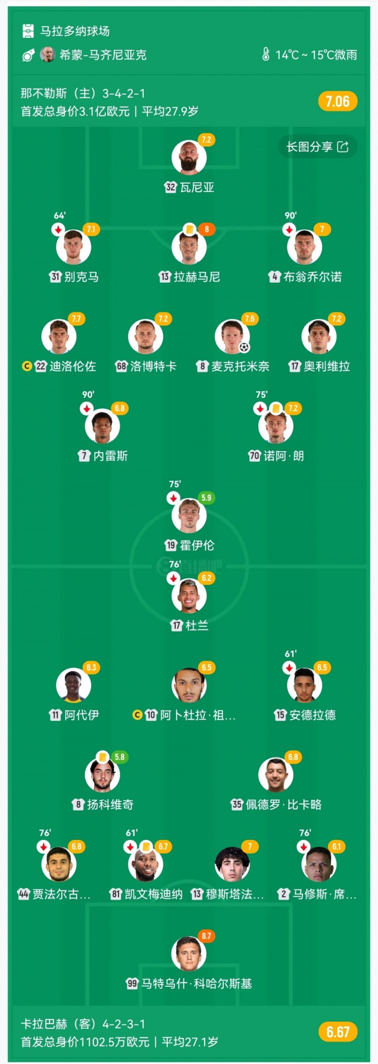 【双方首发及换人信息】