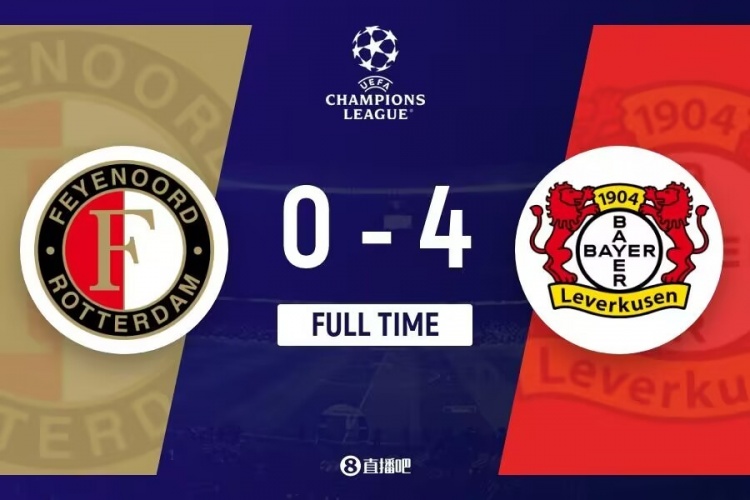 下半场补时2分钟,费耶诺德0-4勒沃库森。