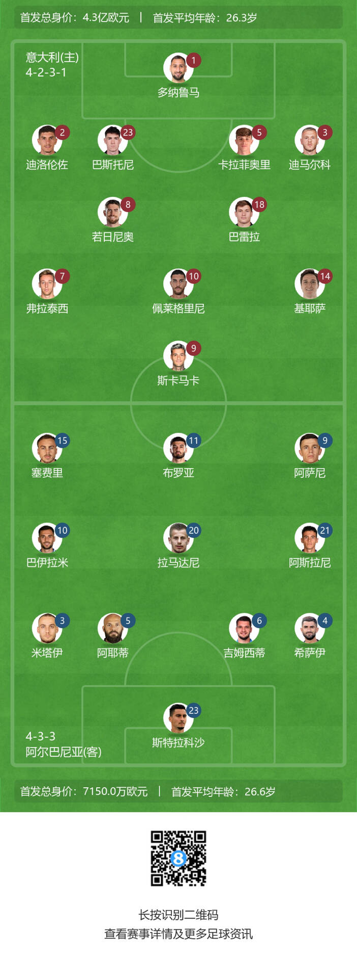 阿尔巴尼亚首发及换人: