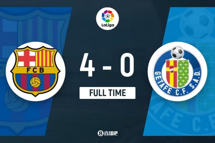 全场比赛结束,巴塞罗那4-0赫塔费。